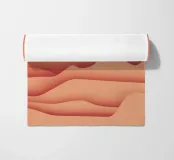 Un paesaggio desertico da sogno, con dune morbide e ondulate sotto un cielo rosa e pesca, che evoca la calma.