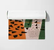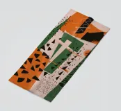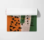 Un collage dinamico di motivi e texture contrastanti, tra cui punti, strisce e scarabocchi astratti. La composizione in beige, nero e rosso è una dichiarazione audace ed eclettica, che celebra il caos creativo.