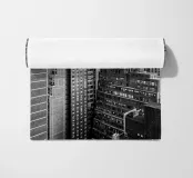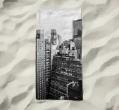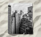 La splendida fotografia in bianco e nero cattura lo skyline di Manhattan, mostrando gli imponenti grattacieli e le loro eleganti facciate in una composizione geometrica da una prospettiva aerea. Con riflessi visibili alla luce del giorno, questo poster di lusso incarna l'arte moderna ed è un'aggiunta elegante agli interni contemporanei.