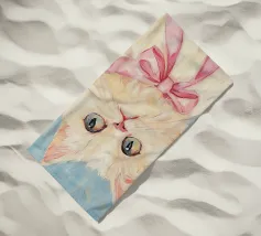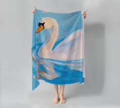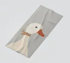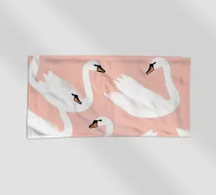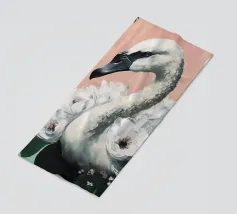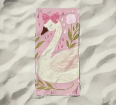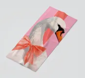 Testa di cigno dipinta a mano a guazzo con un vivace fiocco corallo su sfondo a righe arrossate. Luminosa tavolozza di colori pastello con tratti nitidi e un morbido tocco rétro. Perfetto per la cameretta o per un arredamento preppy.