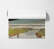 Un terreno da sogno cucito dal tempo e dal mito: All At Once fonde tre paesaggi iconici in un mondo surreale e senza luogo. Il tranquillo specchio del Monte Fuji di Kashiwabara (1896, Kazumasa Ogawa) si innalza nella silhouette delle Piramidi di El-Geezeh di Frith del 1858, il tutto coronato dalle eteree dune di White Sands, nel Nuovo Messico, catturate dalla NASA. Insieme, queste scene dissolvono la geografia e la cronologia per evocare una tranquilla meraviglia cinematografica, dove vulcani e faraoni si incontrano davanti a dune simili a nuvole. Un portale per il muro e un pellegrinaggio per l'occhio.
