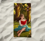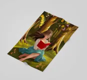 A person sits on the grass in a serene forest, engrossed in a book. Warm golden light filters through the trees, creating a magical and tranquil atmosphere.