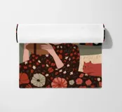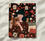 Questa immagine presenta una persona seduta su un divano, intenta a leggere un libro. Lo sfondo è riempito da un vivace motivo floreale, che esalta l'ambiente intimo e accogliente.