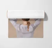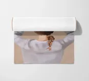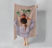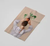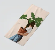 Un ritratto affascinante e dai toni tenui di una donna che tiene in equilibrio una pianta in vaso sulla testa, vista da dietro. Con la sua treccia infilata sotto un maglione accogliente e su uno sfondo neutro e caldo, questa illustrazione celebra l'armonia, la consapevolezza e un tocco di estrosità quotidiana. Un'opera d'arte da parete perfetta per gli amanti delle piante, per gli spazi dedicati allo yoga o per gli interni calmi e creativi.