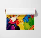 Colori vivaci si fondono in forme dinamiche, creando una composizione gioiosa ed energica. L'assortimento di tonalità offre un'esperienza visiva sorprendente e piena di movimento.