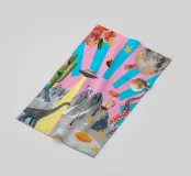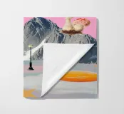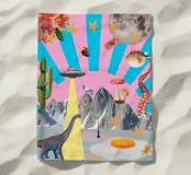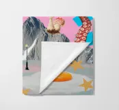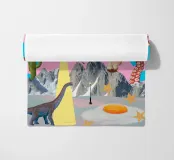 La follia colorata e il caos del collage. Ogni cosa casuale in un'immagine, con un tocco di grafica retrò. Dinosauri, alieni, polpi, funghi, pesci palla, uova fritte, montagne, lampioni, luna, biglietti del cinema, ecc.