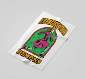 Un personaggio dinamico corre con determinazione sotto la frase "ESERCITA I TUOI DEMONI". I colori vivaci e l'abbigliamento atletico conferiscono all'immagine un'atmosfera motivante e vivace.