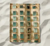 Modelli urbani a Berlino-Mitte: La moderna facciata dell'edificio si presenta come un disegno geometrico di vetro e pietra. Le finestre, disposte in modo uniforme, riflettono la luce del giorno, mentre le dolci onde della struttura dell'edificio spezzano il ritmo rigoroso. Le sottili tracce del tempo e delle intemperie conferiscono all'architettura chiara una sottile vivacità: un gioco tra ordine e cambiamento organico.