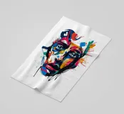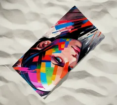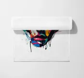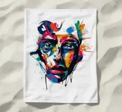 Vivida illustrazione astratta di un volto umano resa con pennellate audaci e vibranti spruzzi di rosso, blu, giallo e nero. I dettagli espressivi evocano emozioni e creatività, fondendo arte moderna e realismo.