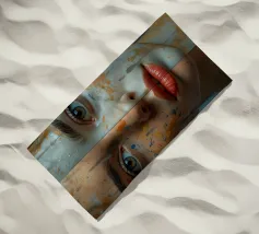 I colori scorrono, come attimi fugaci che sfumano nell'eternità. La sua pelle, dipinta con i colori della foresta, è una poesia vivente che parla dell'armonia della natura. Ogni linea e ogni sfumatura di colore rivela la tranquilla bellezza di un essere che cammina tra i mondi.
