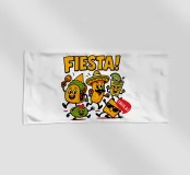 I personaggi dei cartoni animati che rappresentano cibi messicani, come taco, guacamole e burrito, ballano allegramente. Sono accompagnati da un "Fiesta!".
