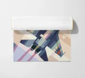 Get an illustration of a modern fighter jet in a starry sky with a dynamic geometric style.