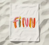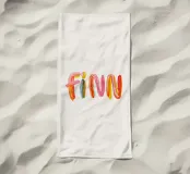 Il nome "Finn" è composto da pennellate colorate e allegre.