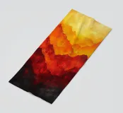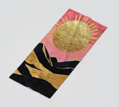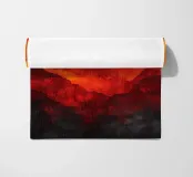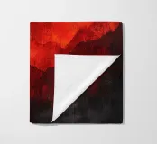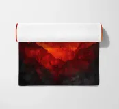 Abstrakte Berglandschaften in warmen Farben mit Rot- und Orangetönen vor einem dunklen Hintergrund. Die großformatige Malerei erinnert sowohl an die traditionelle chinesische Tuschemalerei als auch an die strukturierte Pinselführung der Ölmalerei auf einer Holztafel. Die silhouettierten Bergformen sind in das weiche Licht eines Sonnenuntergangs getaucht, wodurch eine kühne, gefühlsbetonte Komposition entsteht, die das Wesen der Natur einfängt.