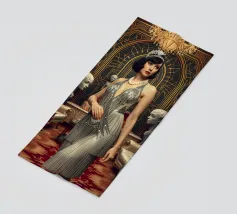 Elegante ragazza flapper nel lusso dell'Art Déco Questa immagine mostra una splendida flapper girl in posa elegante tra opulenti accenti metallici, arredi sontuosi e decorazioni ornamentali, fondendo gli stili futuristico e Art Déco con curve organiche e surrealismo sognante.