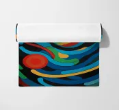 Un audace motivo astratto con un tocco di energia dinamica che simboleggia il movimento e la fluidità. Colori vivaci che evocano temi come l'acqua, la vita e il movimento. Una fusione innovativa di tradizione e modernità per interni contemporanei e minimalisti. Un linguaggio visivo unico che supera i confini culturali.