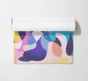 Un vivace motivo astratto caratterizzato da un'armoniosa miscela di tonalità blu, viola e arancione. Questo disegno moderno e minimalista presenta curve geometriche morbide e forme fluide, creando un'estetica giocosa ma elegante. Questo disegno astratto presenta un'interazione dinamica di elementi audaci e morbidi, mescolando ricche tonalità di blu, viola e arancione in una composizione fluida e scorrevole. Moderno e minimalista nella struttura, il disegno utilizza curve geometriche e forme organiche per creare un senso di movimento e armonia.