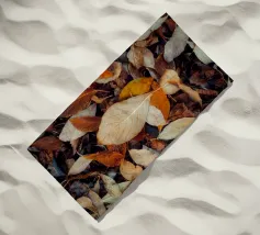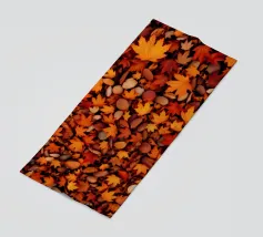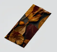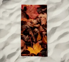 Varie tonalità di foglie autunnali ricoprono il terreno, mostrando un mix di gialli, marroni e rossi tipici del tardo autunno. Questo tranquillo spettacolo della natura evoca il cambiamento stagionale e la bellezza.