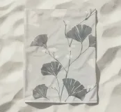 L'elegante illustrazione di foglie di ginkgo in colori pastello combina bellezza botanica e design minimalista, perfetto per una decorazione naturale armoniosa.