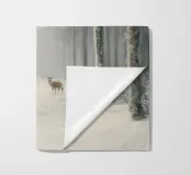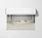 Questo suggestivo motivo invernale mostra una foresta innevata con alberi ad alto fusto, al centro della quale un piccolo gruppo di cervi si sofferma pacificamente. La leggera foschia conferisce alla scena un'atmosfera fiabesca e tranquilla che irradia calma e contemplazione. Perfetto per biglietti d'auguri natalizi, poster, calendari o come decorazione murale per la stagione invernale. Questa immagine trasmette la bellezza e la magia della natura in inverno.