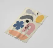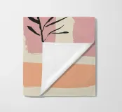 Un'opera d'arte astratta minimalista che presenta un insieme di forme fluide e organiche in una tavolozza di colori terrosi come terracotta, beige, nero e giallo.