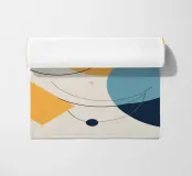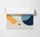 L'opera d'arte presenta una disposizione dinamica di forme geometriche dai colori vivaci. Cerchi, rettangoli e linee si intrecciano, creando un senso di movimento ed equilibrio.