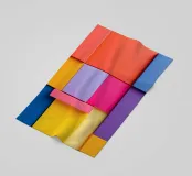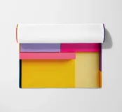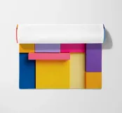 Forme geometriche dai colori vivaci sono disposte in un motivo accattivante. La composizione presenta quadrati e rettangoli di vari colori, creando un gioioso impatto visivo.