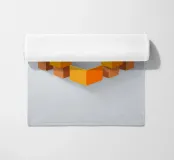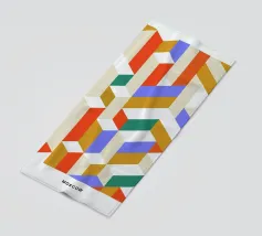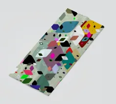 Una vivace disposizione di forme geometriche in vari colori crea un disegno intrigante su uno sfondo di luce soffusa, sottolineando l'arte e la creatività moderne.