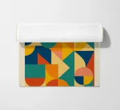 Questo poster colorato in stile Bauhaus moderno combina forme geometriche chiare e colori vivaci. La composizione è strutturata e giocosa allo stesso tempo: un vero e proprio richiamo visivo per qualsiasi casa o ufficio moderno.