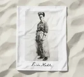 Disegno grafico a mano di Frida Kahlo: questo dettagliato disegno digitale mostra Frida Kahlo in una potente postura eretta che irradia forza e determinazione. Le ombreggiature e i tratti sottili conferiscono all'immagine profondità e dimensione. La firma di Frida è integrata con stile.