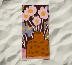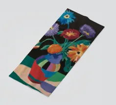 Un'opera d'arte astratta vibrante ed espressiva con una fusione di colori audaci di ispirazione fauvista come il magenta, l'arancione e il nero. Le pennellate e le forme energiche creano un'opera dinamica e appassionata.