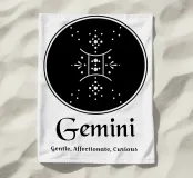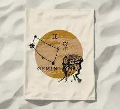Questo disegno rappresenta il segno zodiacale dei Gemelli, simboleggiato da due gemelli in equilibrio e armonia. Con una composizione circolare, l'immagine gioca su elementi geometrici e punti stilizzati che evocano la dualità e la versatilità di questo segno. Le linee e i dettagli centrali sono equilibrati, suggerendo il legame tra le due personalità gemelle, mentre la disposizione dei punti intorno al cerchio enfatizza l'idea del movimento e del continuo cambiamento, tratti tipici dei Gemelli. Il design minimalista con contrasto bianco e nero lo rende elegante e facilmente adattabile a diversi stili di arredamento.