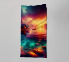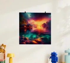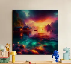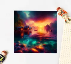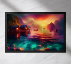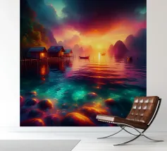 In una sera tranquilla, mentre il sole iniziava a riempire il cielo di colori caldi e invitanti, un piccolo villaggio dell'Asia si trovò sulla riva di un lago liscio come uno specchio. Le case galleggianti sembravano galleggiare sull'acqua, i loro riflessi così chiari e perfetti che era difficile dire dove finisse la realtà e iniziasse il riflesso.