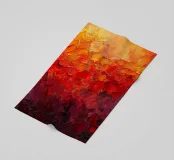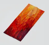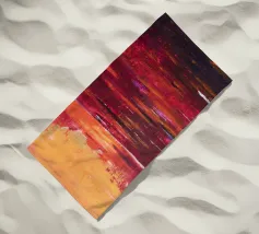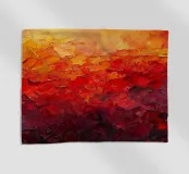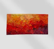 Un vibrante dipinto astratto composto da pennellate ricche e strutturate che fondono gialli, arancioni e rossi profondi in toni cremisi scuri. La superficie a impasto stratificato crea un senso di movimento e calore, evocando l'energia di un orizzonte incandescente o di un paesaggio fuso. Le audaci transizioni di colore e le pennellate espressive ne fanno un'opera d'arte contemporanea di grande impatto visivo.