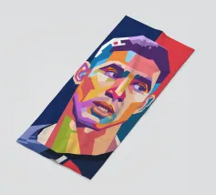 Lionel Messi in stile WPAP è un ritratto sorprendente e colorato del leggendario calciatore, creato utilizzando forme geometriche nitide e toni vivaci. Questo pezzo pop art cattura i tratti iconici e il carisma pacato di Messi, celebrando la sua grandezza attraverso l'audace linguaggio visivo di WPAP (Wedha's Pop Art Portrait).