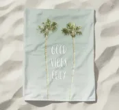 Vista idilliaca sulle palme in uno stile minimalista. SOLO BUONE VIBRAZIONI. Buone vibrazioni, energia positiva e semplicemente una grande atmosfera.