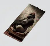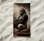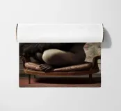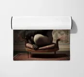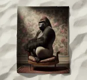 A quietly arresting surreal portrait that places raw power within an unexpectedly refined setting. Seated with composed assurance, the figure occupies an elegant chair against patterned walls, blending physical presence with a sense of calm dignity. Soft, directional lighting sculpts form and texture, lending the scene a classical, almost painterly atmosphere.