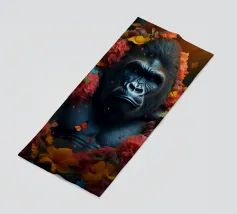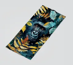 Un imponente gorilla tiene in mano una banana nel mezzo di un lussureggiante paesaggio tropicale. Questo disegno realizzato ad arte combina piante esotiche, colori vivaci e la maestosa presenza di un gorilla. Perfetta per progetti che celebrano la bellezza della natura e della fauna selvatica, questa illustrazione trasmette un forte ma armonioso senso di natura selvaggia e tranquillità.Gorilla maestoso: rappresentazione di un gorilla orgoglioso che tiene in mano una banana. Dettagli tropicali: circondato da piante e frutti esotici.