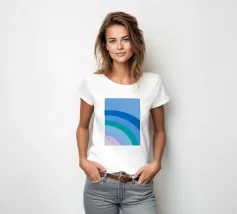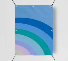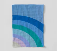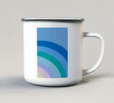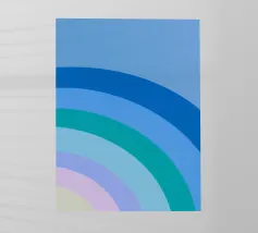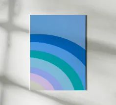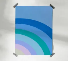 Questa delicata illustrazione mostra un arcobaleno in colori pastello con morbide sfumature di colore dall'azzurro al rosa, al giallo pastello e al verde chiaro. Le linee geometriche e le strisce strutturate danno un tocco moderno all'opera grafica e riflettono la natura. Un gioco armonioso di colori che irradia calma e gioia.