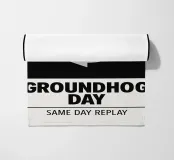 Stampa di Groundhog Day, Poster cinematografico alternativo, Bianco e nero, Arte murale minimale, Segno di replay, Ciclo del tempo, Stampe di alta qualità, Regalo per i fan del cinema