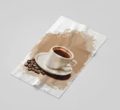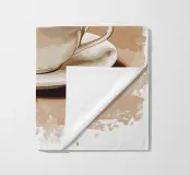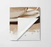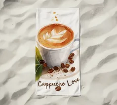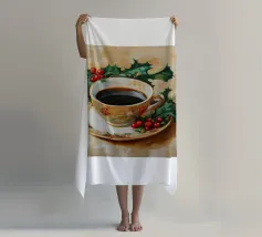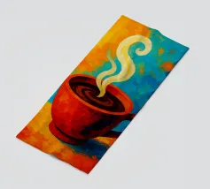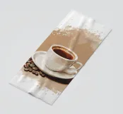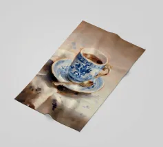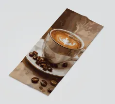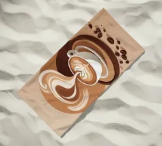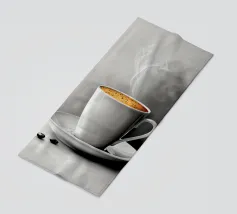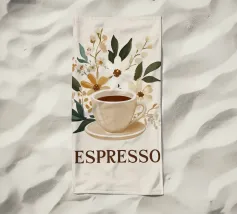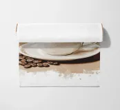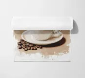 Una tazza di caffè nero su un piattino, circondata da chicchi di caffè sparsi - raffigurata in toni beige morbidi e caldi dal carattere pittoresco. L'immagine emana calma, concentrazione e piacere aromatico. Perfetto per gli amanti del caffè, per l'arredamento dei bar o per gli spazi di lavoro che hanno bisogno di promuovere un ambiente calmo ma elegante.