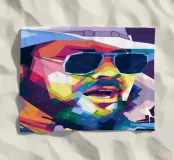 Hank Williams Jr. in WPAP (Wedha's Pop Art Portrait) è una rappresentazione vibrante e geometrica del leggendario cantante country. Questo stile artistico utilizza colori audaci e contrastanti e forme spigolose per creare un ritratto astratto e moderno, pur mantenendo le sue caratteristiche riconoscibili.