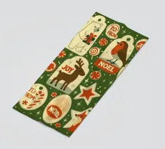 Playful “Ho Ho Ho” typography and iconic Christmas symbols come together in a vintage-inspired pattern full of energy and joy. Perfect for a punchy holiday statement.