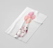 Questa adorabile opera d'arte raffigura un simpatico coniglietto con in mano palloncini colorati, perfetto per aggiungere un tocco di allegria agli oggetti di uso quotidiano. Disponibile su tazze, magliette, quaderni, custodie per telefoni, poster e asciugamani, questo disegno dona gioia e allegria a un'ampia gamma di prodotti, rendendolo ideale per i bambini e i giovani.