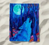 Howling Wolf at night with full moon with fauvism painting art style
