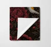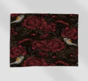 Fiori di crisantemo e uccelli codirosso dipinti a mano