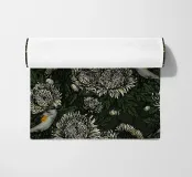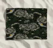 Fiori di crisantemo e uccelli codirosso dipinti a mano