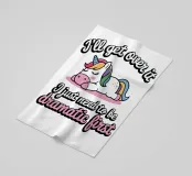 Un simpatico unicorno è sdraiato con una criniera colorata e appare rilassato e soddisfatto. Sopra e sotto l'unicorno, il testo recita umoristicamente: "Mi passerà, devo solo essere drammatico prima".