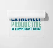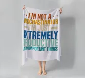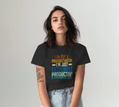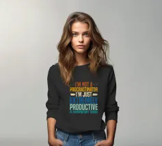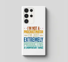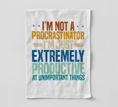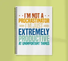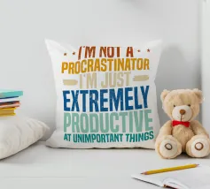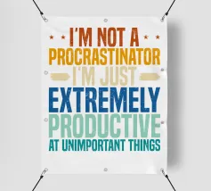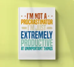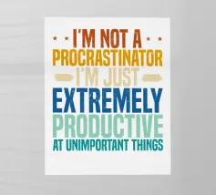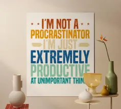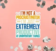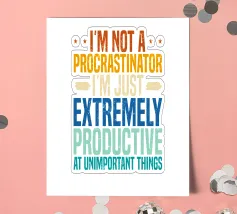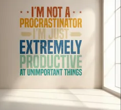Viene visualizzata una citazione umoristica che mette in evidenza una visione giocosa della procrastinazione. Il messaggio è riportato in un testo colorato e in grassetto, che sottolinea le parole "estremamente produttivo".