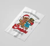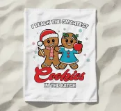 Due sorridenti biscotti di pan di zenzero sono vestiti a festa, uno con un cappello da Babbo Natale e l'altro con una mela in mano. La frase "Insegno ai biscotti più intelligenti del lotto" è stampata intorno a loro, aggiungendo un tema giocoso ed educativo.